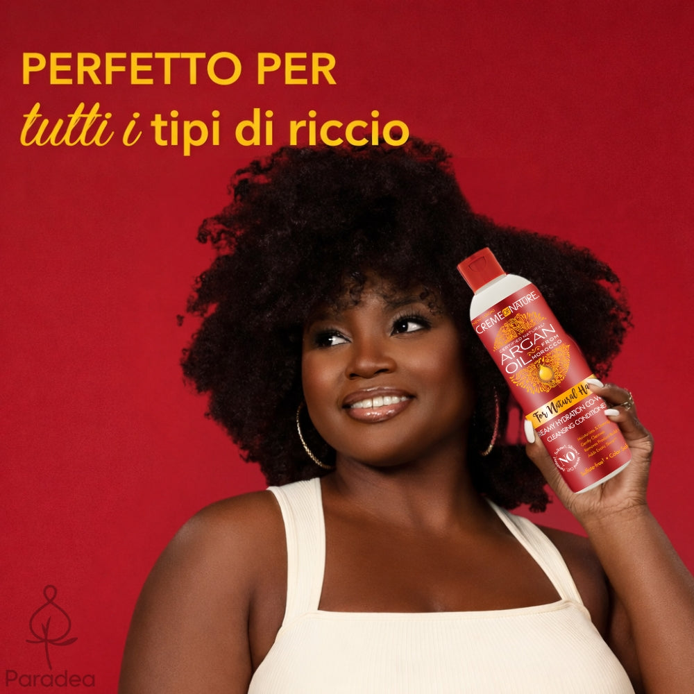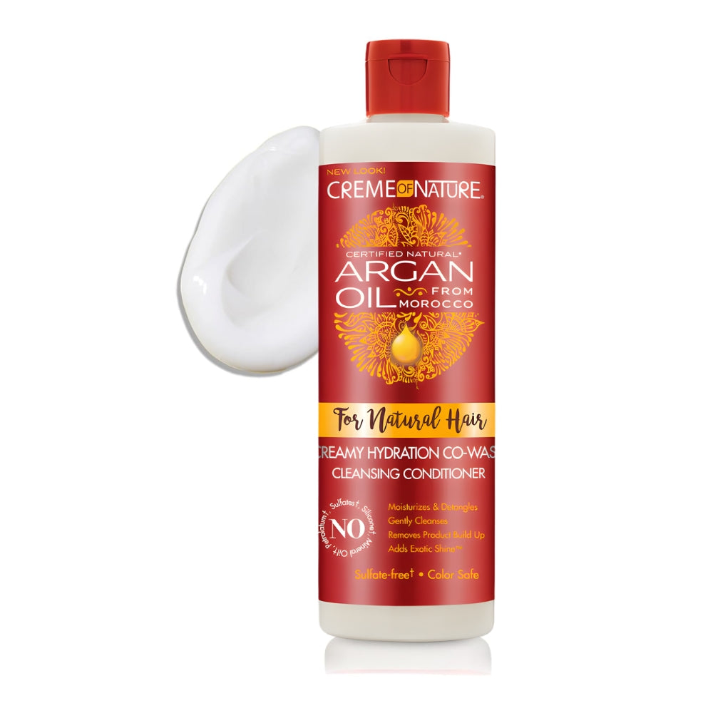 Il Balsamo co-wash Argan Oil from Morocco di Creme of Nature è un detergente delicato senza solfati pensato per la pulizia quotidiana dei capelli ricci, crespi e mossi. Arricchito con olio di Argan del Marocco, rimuove i residui di prodotto, idrata e lascia i ricci morbidi, definiti e senza crespo.