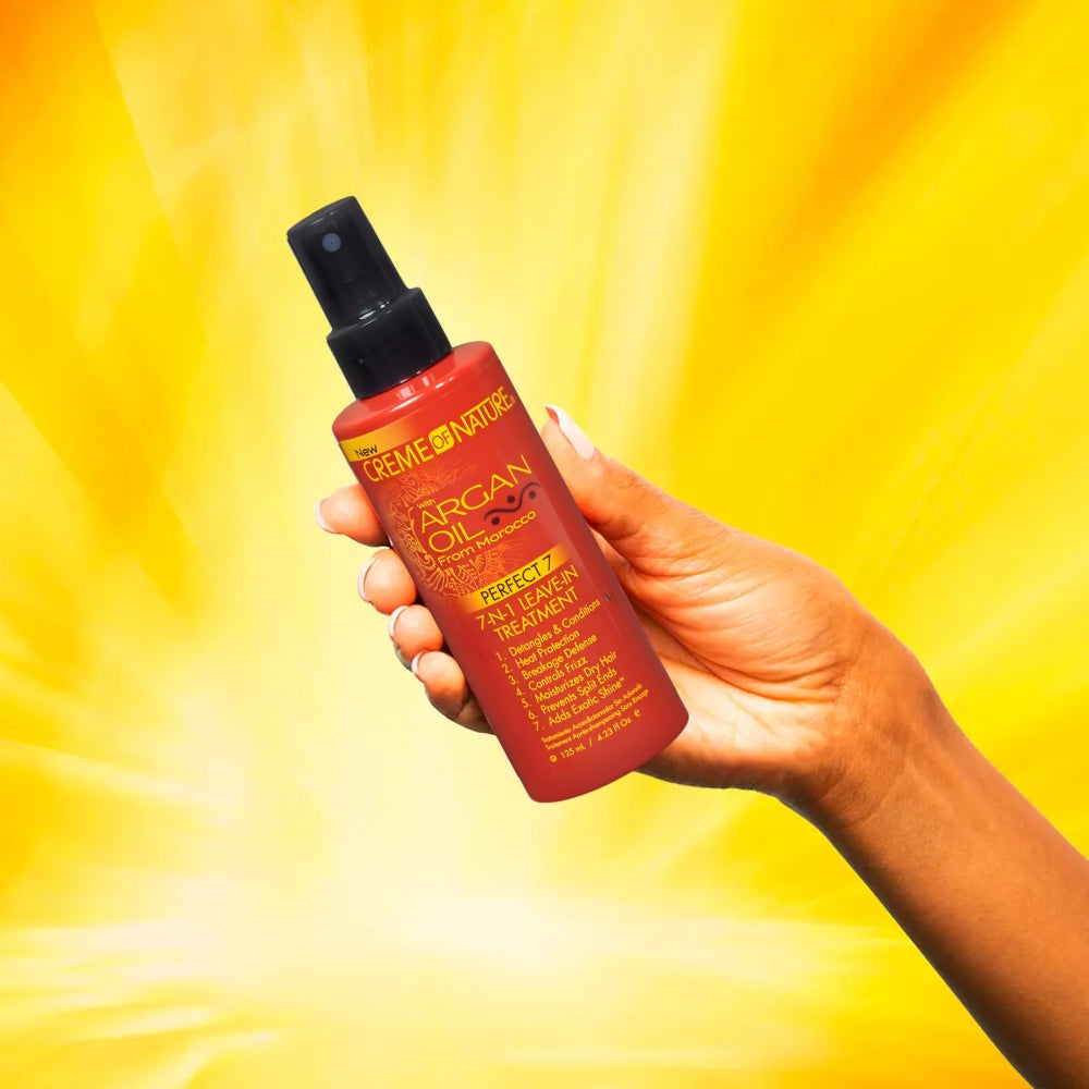 Perfect 7-n-1 Argan Oil Treatment di Creme of Nature è un trattamento senza risciacquo con olio di argan del Marocco pensato per trasformare la tua routine capelli. Una formula leggera ma potente che nutre, protegge e illumina senza appesantire. Ideale per capelli secchi, ricci, crespi, lisci o con extension.