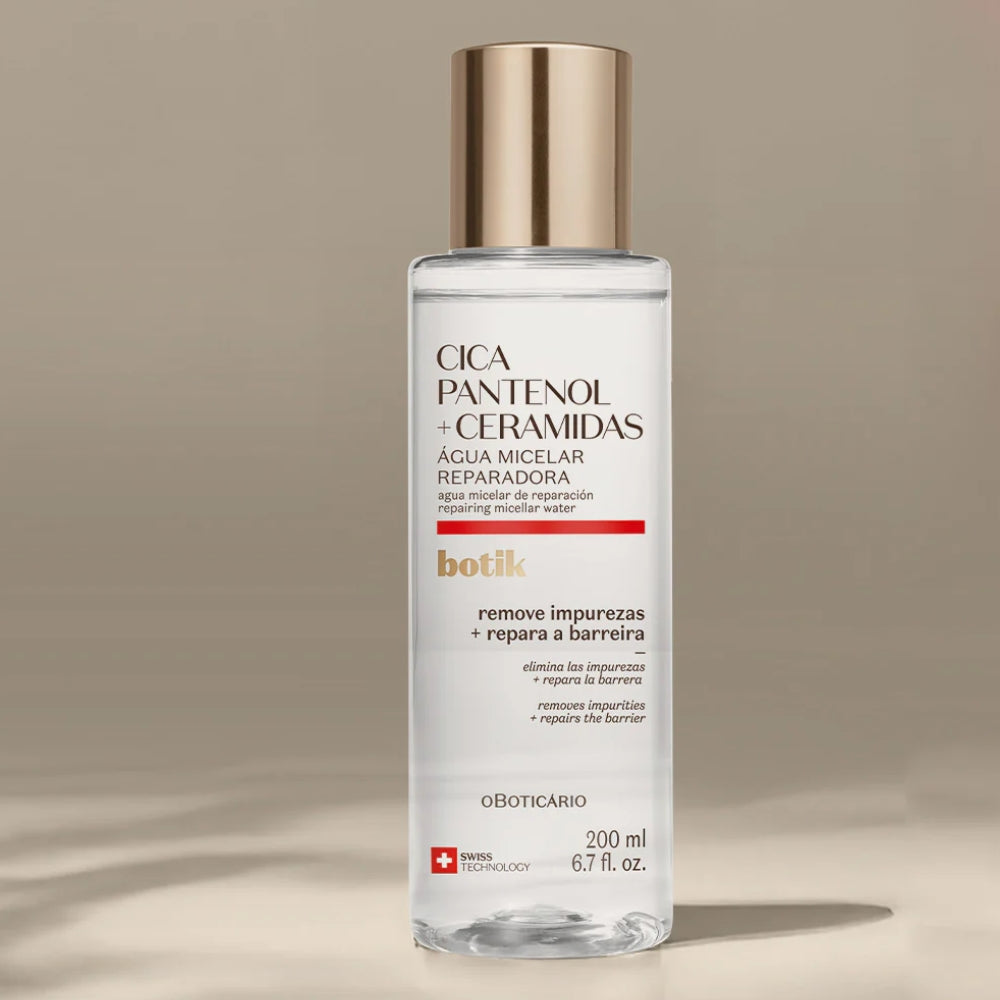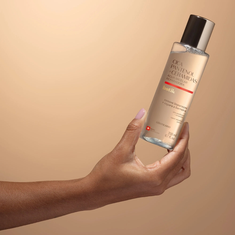 L’Acqua micellare riparatrice Botik di O Boticário è una soluzione detergente delicata pensata per pulire la pelle senza aggredirla. Rimuove impurità, residui di trucco e sebo in eccesso mantenendo intatta la barriera cutanea. La sua formula con Pantenolo e Ceramidi aiuta a calmare la pelle sensibile e a ridurre i rossori già dal primo utilizzo. Ideale per la routine di skincare quotidiana e per chi cerca una acqua micellare riparatrice per pelle sensibile.