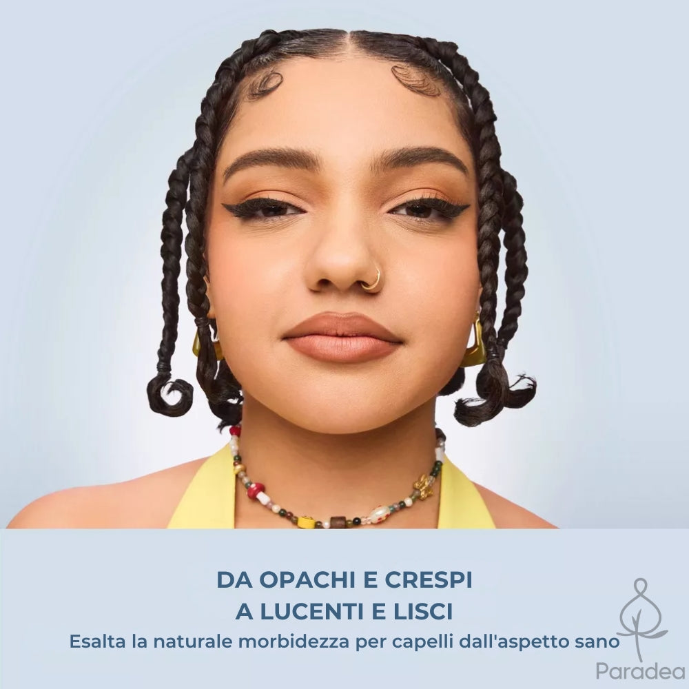 Nutre in profondità la fibra capillare, aiutando a ripristinare l’idratazione naturale dei capelli e lasciandoli visibilmente più morbidi, elastici e luminosi fin dal primo utilizzo. ✨ Districa delicatamente senza spezzare i capelli, riducendo l’effetto crespo e rendendo la pettinabilità più semplice, anche su capelli ricci, mossi o indisciplinati. 💆 Formula leggera e pulita, senza siliconi, solfati, parabeni, ftalati, oli minerali o derivati del petrolio: ideale per una routine quotidiana rispettosa del capello e del cuoio capelluto.
